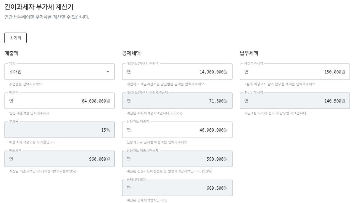 사장님들을 위한 간이과세자 부가세 계산기 사이트입니다.