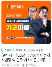 이런 분들을 위해 박문각, 랜드하나와 같은 유명 공인중개사 시험 전문 인강 사이트 영상을 무료로 보는 곳을 소개해 드립니다.