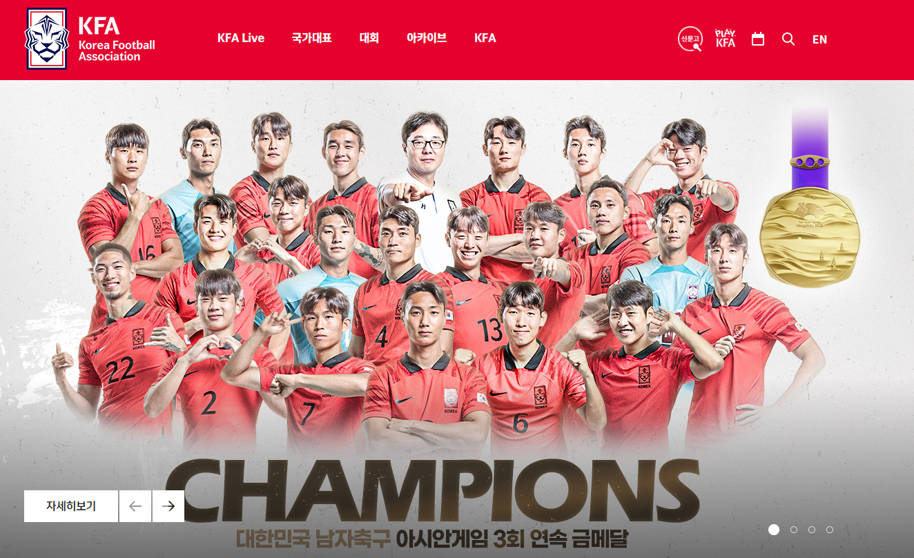 대한축구협회 홈페이지 입니다.
