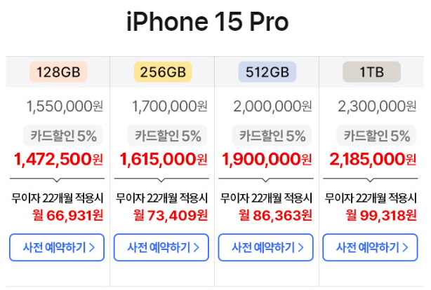 아이폰15프로 사전예약 재고 할인 혜택은 아래와 같습니다.